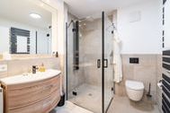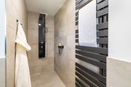 Im zweiten, voll ausgestatteten Badezimmer steht Ihnen eine großzügige Ganzglas-Duschkabine mit den Maßen 120 x 120 cm zur Verfügung.
