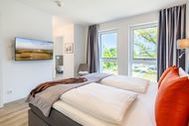 Im zweiten Schlafzimmer finden Sie ebenfalls ein komfortables Boxspringbett (180 x 200 cm), einen Kleiderschrank, einen Schreibtisch und einen Smart-TV vor.