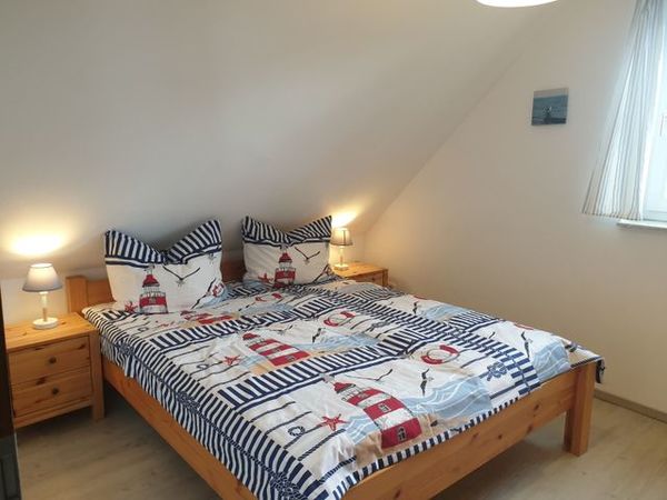 Die kleine Einbauküche im EG ist ausgestattet mit einem Kühlschrank mit integriertem Gefrierfach, einem 2-Platten Cerankochfeld natürlich auch mit Spüle, Toaster, Wasserkocher und Kaffeemaschine. Angrenzend befindet sich das maritime Badezimmer mit Dusche und WC. Das Schlafzimmer 1 verfügt über ein bequemes Boxspring-Doppelbett, natürlich auch mit einem Kleiderschrank. Das Schlafzimmer 2 verfügt über ein Doppelbett. Das Wohnzimmer ist mit einer gemütlichen Couchgarnitur ausgestattet. Hier finden Sie auch einen Flachbild-TV, einen DVD-Player mit einigen Filmen, ferner ein Radio. Über die breite Terrassentür gelangen Sie auf die Wiese bzw. erst auf die vorgelagerte nach Süd-West ausgerichtete Terrasse. Ein Platz für laue Sommerabende. Hier finden auch Ihre Kleinen ausreichenden Platz zum Spielen und Toben. Das Grundstück ist eingezäunt.