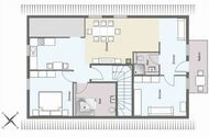Die Wohnung im OG ist mit einem großen Esstisch für bis zu 8 Personen, einer modernen Küchenzeile mit einer Kühl-Gefrierkombination, einem Herd wie auch einem Geschirrspüler ausgestattet. Hier finden Sie auch 2 Bäder, einmal mit einer Dusche, einmal mit einer Badewanne.