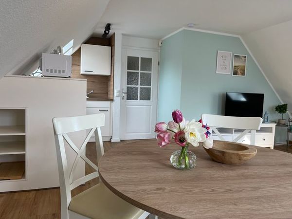 5-Raum-Ferienhaus bis 7 Personen + Baby verteilt über Erdgeschoss und Obergeschoss im modernen Landhausstil.