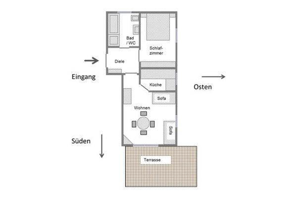 Dusche/WC, Badewanne, Bettwäsche, Handtücher, TV, Kabel/Sat, Terrasse, Tiere willkommen, Nichtraucher, Spülmaschine, Mikrowelle, Kühlschrank, separate Küche, Backofen, Heizung, WLAN, Teppichboden, TV - Flachbild, Strandkorb (persönlich), Doppelbett, Bad/WC, ebenerdig, Kaffeemaschine, Rauchmelder, Toaster, Wasserkocher, Sonnenschutz, Verdunkelungsmöglichkeit