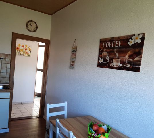 Die Küche ist voll ausgestattet mit Backofen, Kühlschrank, Mikrowelle, Kaffeemaschine, Toaster, Wasserkocher, Eisfach, ein kleiner Esstisch mit 4 Stühlen ist vorhanden.