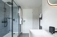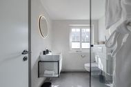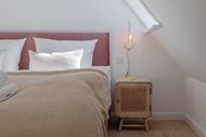 Gönnen Sie sich eine Sylter-Wellness-Auszeit im neuen CPTN Nicolai Resort Endlich mal abschalten, den Stress hinter sich lassen und das Inselleben in vollen Zügen genießen - wenn Ihnen danach ist, dann sind Sie bei uns auf Sylt genau richtig. Fehlt nur noch die perfekte Unterkunft und zufällig haben wir da etwas für Sie! Unsere 70 m² große Kajüte #19 wurde frisch renoviert und befindet sich im Obergeschoss des CPTN Nicolai's Areal in Dock 6 b. Ab jetzt steht das traumhaft gelegene und ausgestattete Urlaubsdomizil für Sie zum Einchecken bereit. Die Ausstattung: Diese moderne 3-Zimmerwohnung bietet Platz für bis zu 4 Personen und vermittelt schon beim Öffnen der Tür: Hier will ich bleiben. Hohe, lichtdurchflutete Räume, ein elegantes Eichenparkett und eine anspruchsvolle Einrichtung lassen das Herz aller Sylt-Fans sofort höher schlagen. Der geräumige Wohnbereich auf dem Mitteldeck (OG) bietet nicht nur viel Platz, sondern verfügt auch über ein vollwertiges Schlafsofa, welches bei Bedarf im Handumdrehen umgebaut ist. Die exklusiv eingerichtete Küche, mit Ausblick, punktet nicht nur mit einer Ausstattung von Top-Markenherstellern, wie z.B. Miele, darüber hinaus lassen der hohe Komfort und die Funktionalität hier keine Wünsche offen. Alles was Sie zum Zubereiten verschiedener Mahlzeiten benötigen, werden Sie hier vorfinden. Herrliches Meerblau und beruhigendes Sand - das Farbkonzept in Ihrem Badezimmer sorgt für das echte Inselfeeling. Eines der Highlights hier ist die erfrischende Regendusche, besonders wohltuend am Morgen oder nach sportlichen Aktivitäten. Die Fußbodenheizung und der Handtuchwärmer sorgen an den etwas kühleren Tagen auf unserer Insel für bestes Wohlbefinden. Entdecken Sie Ihr Schlafzimmer, welches über die Treppe erreichbar ist. Sie erwartet dort ein komfortables Schramm-Boxspringbett, welches eine optimale Erholung nach einem aktiven Tag an der frischen Nordseeluft garantiert. Apropos Nordseeluft, genießen Sie diesen gratis Booster so oft und so lange Sie möchten auf Ihrem Balkon! Hier stehen von Mai bis Oktober stylische und sehr bequeme Balkonmöbel für Sie zum ausgiebigen Relaxen bereit. Besondere Highlights Ihrer Unterkunft: Wie wäre es zwischendurch mal mit etwas Sport oder Wellness? Als unser Gast haben Sie die Möglichkeit, unseren hochmodernen 200 qm großen gemeinschaftlichen Pool- und Saunabereich in Dock 6d, kostenfrei zu nutzen. Neben 1 Laufband, 1 Bike, 1 Rudergerät, verschiedenen Gewichten und und dem 12 x 4 m großen Pool erwarten Sie hier auch Liegen im Loungebereich sowie eine moderne Sauna, die gerade an kühleren Tagen zur optimalen Entspannung beitragen kann. Sie wollen Ihren Vierbeiner mitnehmen? Kein Problem. Wir lieben Hunde, daher sind in unseren Ferienwohnungen Hunde herzlich willkommen. Für alle Autoreisenden bieten wir zusätzlich pro Kajüte einen kostenlosen Parkplatz an.