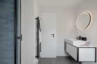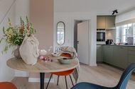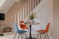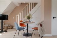 Sind Sie zum Entern bereit? Entdecken Sie die frisch renovierten Kajüten im neuen CPTN Nicolai Resort Haben Sie Lust auf eine Auszeit auf Sylt und suchen Sie noch nach dem passenden Urlaubsquartier? Mitten in Westerland, in unmittelbarer Nähe zum Strand und Zentrum, können Sie ab sofort unsere frisch renovierte 49 m²-Kajüte #28 entern. Die stylische 2-Zimmer-Ferienwohnung befindet sich im Obergeschoss des neuen CPTN Nicolai Resorts in Dock 6 d und freut sich auf Ihre Gesellschaft! Die Ausstattung: Bei uns, nach einer hoffentlich angenehmen Anreise, angekommen, können Sie mit bis zu 3 Personen in die Kajüte #28 einchecken. Öffnen Sie die Eingangstür auf dem Mitteldeck (OG) und fühlen Sie sich im hellen, freundlichen Wohn- und Essbereich ganz wie zu Hause. Mit einem elegant-robusten Eichenparkett - typisch für Sylt - und einer anspruchsvollen Einrichtung ausgestattet, wird dieser erste Eindruck Sie auf herrliche Tage bei uns einstimmen. Hier im Wohnbereich befindet sich u.a. ein vollwertiges Schlafsofa, welches bei Bedarf zur zusätzlichen Schlafgelegenheit umfunktioniert werden kann und einen erholsamen Schlaf garantiert. Ihre Kombüse, die hochfunktionale und moderne Küche, punktet nicht nur mit einer Ausstattung von Top-Markenherstellern, wie z.B. Miele, sondern hält alles bereit, was Sie zum Zubereiten verschiedener Mahlzeiten benötigen. Im Bad treffen Sie auf die Farben Meerblau und Sand - wer denkt da nicht gleich an einen Urlaub am Strand? Einen zusätzlichen, erfrischenden Kurzurlaub, vor dem Start in den Tag, können Sie hier in Ihrer Wellnessoase unter der großen Regendusche wachwerden. Fußbodenheizung und Handtuchwärmer sorgen an den etwas kühleren Tagen für bestes Wohlbefinden. Wenn es in Westerland dunkel wird, geht es auf Ihr Oberdeck! Über die Treppe erreichen Sie Ihre nächtliche Ruhezone. Hier erwartet Sie ein komfortables Boxspringbett der Marke Schramm, welches die optimale Erholung nach einem aktiven Tag an der frischen Nordseeluft garantiert. Es gibt da übrigens noch einen Platz, wo Sie Seeluft und Sonne genießen können, und zwar auf Ihrem Balkon! Hier stehen von Mai bis Oktober stylische und bequeme Balkonmöbel für entspannte Auszeiten parat, ein schöner Ausblick ist inklusive. Besondere Highlights Ihrer Unterkunft: Wie wäre es zwischendurch mal mit etwas Sport oder Wellness? Als unser Gast haben Sie die Möglichkeit, unseren hochmodernen 200 qm großen gemeinschaftlichen Pool- und Saunabereich in Dock 6d, kostenfrei zu nutzen. Neben 1 Laufband, 1 Rudergerät, 1 Bike, verschiedenen Gewichten und dem 12x4m großen Pool erwarten Sie hier auch Liegen im Ruhebereich, sowie eine moderne Sauna, die gerade an kühleren Tagen zur optimalen Entspannung beitragen kann. Sie wollen Ihren Vierbeiner mitbringen? Kein Problem. Wir lieben Hunde, daher sind in unseren Ferienwohnungen Hunde herzlich willkommen. Für alle Autoreisenden bieten wir zusätzlich pro Kajüte einen kostenlosen Parkplatz an.