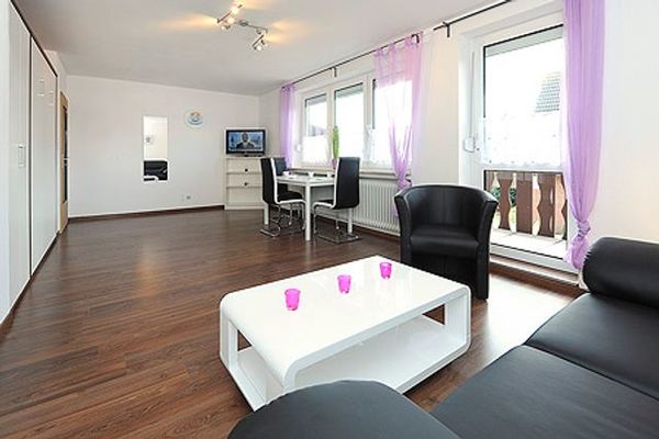 Größe ca. 40 Quadratmeter, Wohn- und Schlafraum mit räumlich abgeteiltem Küchenbereich, Badezimmer mit Dusche, Waschtisch und WC, Obergeschoss, Balkon, Internetzugang über WLAN möglich, optimal für 2 Personen.