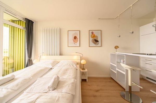 Die neu renovierte Ferienwohnung gewährt einen traumhaften Ausblick auf die Kieler Förde sowie den Schilkseer Hafen und lädt mit seinem dezenten, nordischen Charme zum Verweilen ein. Das 28 qm Appartement bietet Platz für zwei Personen und befindet sich im 9. Stock des Olympia Hotels, der bequem mit dem Fahrstuhl zu erreichen ist. Der Wohnbereich verfügt über ein Doppelbett (160 x 200 cm). Darüber hinaus besitzt die Wohnung einen Balkon (6 m2), direkt begehbar über den Wohnbereich. Da der Balkon eine Verglasung hat, kann man den Balkon bei jedem Wetter nutzen. Unser Tipp: Frühstücken Sie hier morgens bei Sonnenschein und planen Sie Ihren Tag mit dem wunderbaren Blick auf die Schilkseer Bucht. In der zum Wohn- und Essbereich angrenzenden Küchenzeile, ausgestattet für den täglichen Bedarf, stehen ein Kühlschrank als auch ein Ceranfeld für Sie zur Verfügung. Das innenliegende Badezimmer besticht durch seine sandfarbene, helle Optik. Neben einem WC ist auch ein Waschbecken vorhanden, dessen Unterschrank mit zwei Schubladen ausreichend Stauraum bietet. Die Dusche sorgt für einen bequemen Zugang und die Trennwände für uneingeschränktes Duschvergnügen. Genügend Stauraum hält auch der deckenhohe Einbauschrank im Flur für Sie bereit. Durch die ausgewogene Aufteilung in Ablage- und Aufhängebereiche lässt sich alles von der Hose bis zum Kleid passgenau verstauen. Wir würden uns freuen, Sie in Schilksee begrüßen zu dürfen. Genießen Sie Sonne, Strand und Meer. Besonderheiten Diese Ferienwohnung ist eine Nichtraucherwohnung. Geraucht werden kann gerne auf dem Balkon vielen Dank für Ihr Verständnis. Tiere sind nicht gestattet. Zu dieser Wohnung gehört außerdem ein PKW-Stellplatz. Es besteht zusätzlich die Möglichkeit Fahrräder in einem abgeschlossenen Außenbereich unterzustellen. In diesem Haus (Drachenbahn 20) befinden sich weitere Ferienwohnungen von uns (Smaland, Seaside, Alkoven, Theodor, Drachenhöhle 603 [&] Drachenhöhle 604, Immerschön, Weitblick, Achterdeck und Hafenperle). Dies kann für Sie von Vorteil sein, falls Sie weitere Unterkünfte für mehrere Personen benötigen. Sprechen Sie uns gerne an!