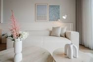 82 großzügige Quadratmeter warten im Appartement B 2.1 im Haus B der Strandterrasse im 2. Obergeschoss nur darauf, seinen bis zu 4 Gästen eine unvergessliche Auszeit direkt an der Ahlbecker Strandpromenade zu bescheren. Freuen Sie sich auf viel Platz, Komfort und Eleganz in diesem 3-Raum-Appartement. Es ist ein kleines Auszeitparadies mit jeder Menge Schick und Noblesse. Ein großes Wohn-Esszimmer ist der ideale Raum für gemeinsame Mußestunden auf dem stylischen und äußerst bequemen Sofa oder dem dazu gehörenden Sessel oder am schönen großen Esstisch. Ein Elektrokamin (ohne Wärmeabgabe) sorgt für Gemütlichkeit und um das Entertainment kümmert sich der 50 Zoll Flat-TV. Eine kleine Arbeitsstation ergänzt den Raum funktional. Viel Spaß beim Postkarten schreiben. Die zum Wohnzimmer hin offene Küchenzeile ist mit allen modernen Markengeräten ausgestattet. Ein Backofen, ein 4-Platten-Induktionsherd, ein Toaster, eine Geschirrspülmaschine, eine Kaffeemaschine sowie eine Nespresso-Kapselmaschine sind nicht nur Helfer beim Kochen und Zubereiten der Mahlzeiten, sie sorgen auch für Spaß in der Küche. Ist das Wetter schön, eignet sich der West-Balkon zum Essen unter freiem Himmel bestens. Das Meeresrauschen der nahen Ostsee gehört zum Service dazu. Zugang zum Balkon haben Sie sowohl vom Wohnzimmer als auch von einem der beiden Schlafzimmer. Hier können Sie also schon direkt nach dem Aufstehen einen tiefen Atemzug frische Ostseeluft genießen. Beide Schlafzimmer verfügen gleichermaßen über ein komfortables Boxspringdoppelbett (eines davon 1,80m x 2,00m), einen Kleiderschrank sowie einen weiteren Flat-TV (43 Zoll). Die Wohnung verfügt zudem über zwei moderne Duschbäder mit Waschtisch und WC. Eine kleine Wellnessoase in Form einer Infrarotsaunakabine wartet in einem der Bäder auf entspannungssehnsüchtige Wärmeliebhaber. Zum Appartement gehört in der Tiefgarage ein PKW-Stellplatz. Sie sehen, es ist alles bereit für eine erholsame Auszeit an der Ostsee. ***Aktueller Hinweis: Bis auf weiteres finden Ausbauarbeiten im Penthouse sowie vereinzelte Arbeiten im Gebäude statt. Zudem werden auch die derzeit ungenutzten Gewerbeflächen im Erdgeschoss zu Restaurants und anderen Einrichtungen ausgebaut. Während dieser Zeit kann es zu optischen und akustischen Beeinträchtigungen kommen. Wir danken Ihnen für Ihr Verständnis und freuen uns auf Ihren Besuch! *** Die 2024 fertig gestellte Strandterrasse liegt direkt an der belebten Strandpromenade und bietet einen einzigartigen Ausblick auf die Grand Dame der historischen Seebrücken sowie die historische Konzertmuschel, einem beliebten Treffpunkt für Kunst und Kultur. Dahinter liegt die Ostsee ein Panorama, das zu den schönsten in den Kaiserbädern gehört. Es ist wie das Abtauchen in eine andere Zeit. In eine Zeit, in der man mit Stock, Sonnenschirm und Hut fürs Sehen und gesehen werden über die Promenade schlenderte; aber auch in eine Zeit, in der damals wie heute Zeit einmal für eine kurze Weile keine Rolle spielt. Weil man angekommen ist im Loslassen, Entspannen und Genießen. Es ist dieser besondere Geruch nach Meeresluft und Freiheit, der in Erinnerung bleibt. Dazu die Bilder, die man mitnimmt. Von langen Strandspaziergängen, vom Lachen in fröhlich schäumenden Ostseewellen, von der Zeit in einem wunderschönen Urlaubsdomizil. Denn genau das ist die Strandterrasse mit ihren 56 modernen und exklusiven Ferienappartements direkt gegenüber der Ahlbecker Seebrücke. Die Ein-, Zwei- oder Dreizimmerwohnungen zwischen 40 und 70 Quadratmeter groß sind von einer Innenarchitektin gemeinsam mit unserem Erfahrungsschatz an Gästewünschen mit viel Liebe zum Detail und ganz individuell konzipiert worden. Entspannung und Wohlfühlen stehen an erster Stelle. Alles ist aufeinander abgestimmt und sorgt für eine gemütliche Atmosphäre. Wählen Sie zwischen einem Domizil in einem hellen, sandfarbenen Designkonzept oder einem Appartement mit anthrazitfarbenen Farbakzenten. Alle Appartements verfügen gleichermaßen über eine stilvolle und komfortable Einrichtung, die passgenau angefertigt worden ist, sowie über moderne Küchen und Bäder. Jedem Schlafzimmer ist ein eigenes Bad mit Dusche zugeordnet (außer App. B4.5). Die Appartements besitzen fast alle einen Balkon viele schauen sogar zur Ostsee hinaus. Die meisten Feriendomizile haben einen Elektrokamin und Infrarotsaunen. Im Erdgeschoss befindet sich ein separater Gemeinschaftsraum für Fahrräder. Außerdem besteht die Möglichkeit, im Gemeinschaftswaschraum 2 Waschmaschinen [&] Trockner zu nutzen. Ergänzt wird das Angebot durch eine Gemeinschaftssauna, die täglich von 11:00 bis 22:00 Uhr nutzbar ist. In der Tiefgarage (Einfahrtshöhe 2,03 Meter) steht für jede Wohnung 1 Pkw-Stellplatz zur Verfügung. Ist alles zur Zufriedenheit untergebracht? Dann kann der Urlaub ja beginnen. Und beim Blick vom Balkon über die Ostsee treffen sich zum Sonnenaufgang das Heute und das Damals. Gelassenheit legt sich beim Gang hinunter an den Strand auf die Seele. Jetzt darf die Zeit stehenbleiben.