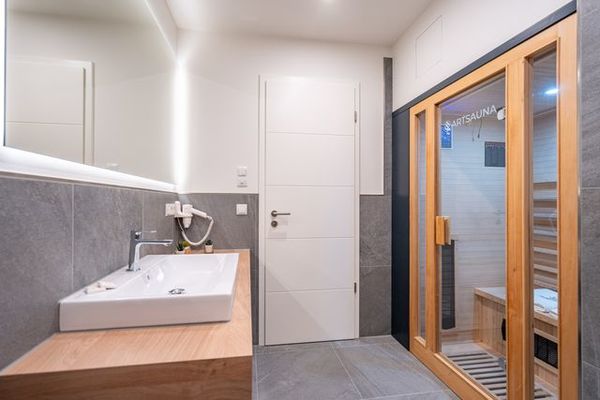 Dusche/WC, Bettwäsche, Handtücher, Balkon, Tiere willkommen, Nichtraucher, Waschmaschine, Spülmaschine, Trockner, Haartrockner, Kühlschrank, Backofen, Kamin, Heizung, WLAN, Safe, Gefriermöglichkeit, TV - Flachbild, Infrarot-Kabine, Küche (offen), Doppelbett, Kaffeemaschine, Toaster, Wasserkocher, Pad-/Kapsel-Kaffeemaschine
