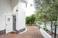 Das Haus wurde in den 80er Jahren erbaut und bietet Platz für bis zu sechs Personen. Der Wohnraum mit offener Küche und gemauertem Sofa hat eine abgerundete Form und erinnert an die Costa Smeralda. Das maritime Interieur sorgt für eine entspannte Atmosphäre. Das große Master-Schlafzimmer verfügt über ein Doppelbett, einen Wandschrank, ein eigenes Badezimmer und direkten Zugang zum Garten mit Meerblick. Das zweite Schlafzimmer hat ein französisches Doppelbett, aber keinen Schrank. Das dritte Schlafzimmer ist schmal und hat zwei Einzelbetten sowie einen Wandschrank. Auch von diesem Zimmer aus gelangt man direkt in den Garten. Ein zweites Badezimmer mit Dusche befindet sich im Flur.