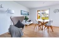 Die voll ausgestattete Wohnküche ist ideal für gemeinsames Kochen; die überdachte Terrasse am Essbereich eignet sich perfekt für Grillabende, auf der Ostterrasse genießen Sie Frühstück in der Morgensonne. WLAN und Smart-TV mit Telekom Home Entertainment sowie zwei Schlafzimmer mit Zugang ins Grüne runden das Angebot ab.