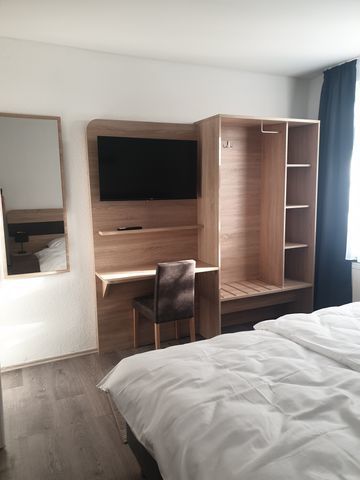 Doppelzimmer mit familienfreundlicher und moderner Einrichtung, Zustellbett möglich. Parkplatz und kostenfreies W-LAN sowie TV, Insektenschutz vor den Fenstern, WC / Dusche, Bettwäsche, Handtücher inbegriffen.