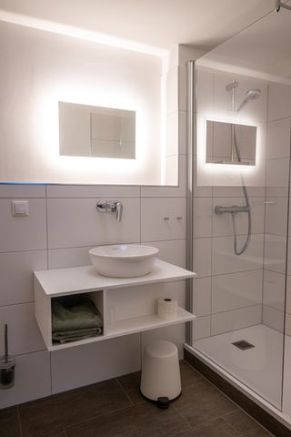 Großzügige, hell und freundlich gestaltete Dachgeschosswohnung für 2 bis 4 Personen. Die Wohnung verfügt über einen großzügigen Wohnraum mit bequemem Sofa und offener, gut ausgestattete Küche, ein Schlafzimmer mit Doppelbett und ein Bad.