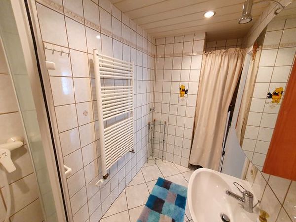 Unsere Nichtraucher-Ferienwohnung befindet sich im Erdgeschoss des 2-Familien-Hauses. Über den Eingangsbereich mit Treppenflur erreichen Sie die separate Wohnung. Ein großes, helles und modernes Wohnzimmer mit integrierter Küchenzeile und Essecke lädt zum Verweilen ein. Ein bequemes Schlafsofa bietet die Möglichkeit der Aufbettung für Ihre Kinder oder Enkelkinder. Zusätzlich steht Ihnen noch eine Aufbettung in Form eines Schrankbettes zur Verfügung. Die Küchenzeile hat alles, was Ihren Urlaub bei uns angenehm gestaltet. Vom Backofen mit Cerankochfeld, Kühlschrank mit Gefriermöglichkeit, einer Mikrowelle, einem Geschirrspüler bis hin zur Kaffeemaschine ist alles vorhanden. Das Schlafzimmer verfügt ein Doppelbett (1,80 x 2,00 m) und einen Kleiderschrank. Das Bad ist innenliegend und mit einer Dusche ausgestattet. Leider können wir Ihnen auf dem Grundstück keinen Parkplatz zur Verfügung stellen. Am Haus direkt befinden sich kostenlose öffentliche Parkflächen.