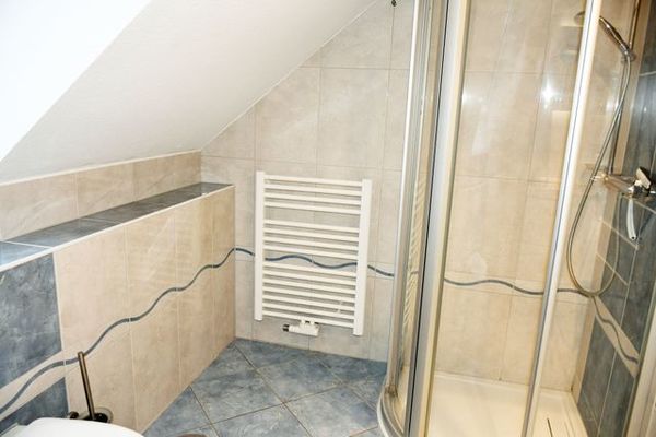 - 1. Bad mit Dusche, Waschbecken, WC, Handtuchtrockner und Tageslicht