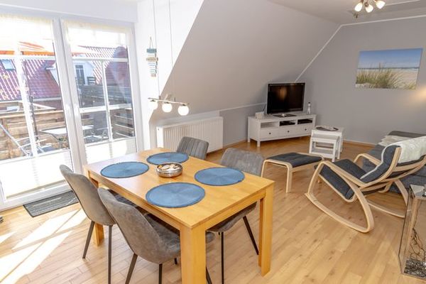 Dusche/WC, Kabel/Sat, Balkon, Nichtraucher, Waschmaschine, Spülmaschine, Haartrockner, Kühlschrank, Backofen, Heizung, WLAN, Gefriermöglichkeit, TV - Flachbild, Küche (offen), Tiere nicht erlaubt, Doppelbett, Schlafsofa, Deichblick, Kaffeemaschine, Rauchmelder, Toaster, Wasserkocher, Holz- oder Parkettböden, Verdunkelungsmöglichkeit