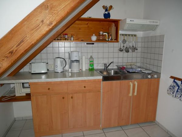 Die Wohnung verfügt über einen kombinierten Wohn- Essraum, mit Couchgarnitur, Sat- TV, Esstisch, Küchenzeile mit Kühlschrank, E- Herd,kleinen Backofen, Kaffeemaschine, Wasserkocher und Toaster. Das Badezimmer ist mit Dusche und WC ausgestattet. Das Schlafzimmer verfügt über ein Doppelbett und Kleiderschrank, eine Aufbettung kann im Kinderbett für 1 Kind bis zu 3 Jahren erfolgen. Ein Babystuhl kann auf Anfrage gestellt werden. Waschmaschinennutzung ist nach Absprache möglich. Die Bettwäsche und Handtücher sind inklusive.
