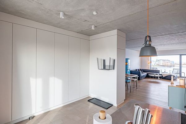Genießen Sie Ihren Urlaub in einem großzügigen 3-Zimmer-Apartment, das keine Wünsche offenlässt. Die offene, voll ausgestattete Küche mit einem kreativen Wandbild lädt zum gemeinsamen Kochen ein. Im stilvollen Wohnbereich mit Kamin genießen Sie eine warme, einladende Atmosphäre und einen atemberaubenden Panoramablick auf den Hafen, Schleimünde mit seinem Leuchtturm sowie die Ostsee.