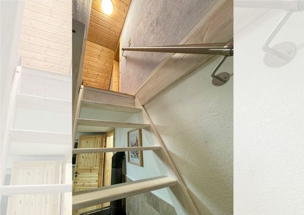 Eine steile Holztreppe führt Sie ins Obergeschoss, wo sich das Schlafzimmer mit einem komfortablen Doppelbett und ein Wohnzimmer mit einer Ottomane und einem Einzelbett befinden. Ein kostenfreier Parkplatz steht zur Verfügung; bei Bedarf können Sie einen weiteren Parkplatz anfragen. Ein Smart-TV befindet sich im Schlafzimmer. Den Kamin im Erdgeschoss dürfen Sie gerne benutzen, ein kleiner Vorrat an Holz steht für Sie bereit. Bitte reinigen Sie den Kamin bevor Sie abreisen.