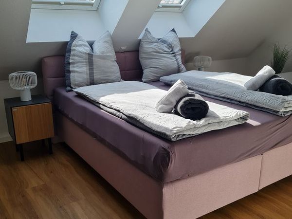 - Schlafzimmer 1 im Erdgeschoss: Doppelbett 180x200 cm (Boxspring)