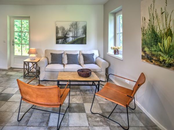 Die große Südterrasse und ein Zugang ins Grüne zum angrenzenden Fließ locken im Sommer ins Freie. Im Winter wärmen Sie sich gemütlich am Kaminofen.