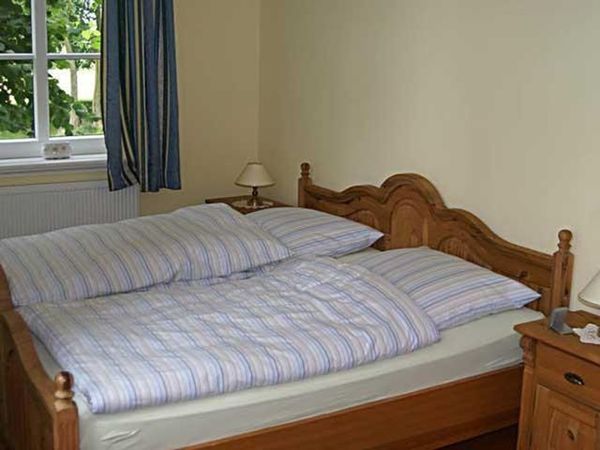Die Bauernstube im Erdgeschoss besteht aus einem großen Wohnzimmer mit Kaminofen, Großer Küche, Elternschlafzimmer, Kinderschlafzimmer, Dusche und WC, Diele und separater Eingang, eigene Terrasse. Sehr helle, hochgebaute Räume, rustikal eingerichtet. Holzfußboden. Wintertauglich. Rauchmelder sind in der gesamten Wohnung vorhanden. Kühlschrank mit Gefrierfach, Elektroherd, Kaffeemaschine, Toaster, Wasserkocher, Fön, Bügeleisen und Bügelbrett, Sat-TV, Flachbildschirm, CD-Player, separate Terrassen mit Möblierung und Grillplatz, privater Bootsanleger samt Boot (Kanu) am Hof, privater Parkplatz. Gepflegter großer Garten. Angelmöglichkeit am nahegelegenen Kanal (100 m). Fahrrad- und Bootsbenutzung, Bettwäsche und Handtücher sind mit im Preis enthalten. Langzeitvermietung an Monteure möglich.