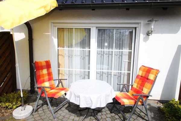 Sie wohnen in einer 22 qm großen Ein-Raum Komfortwohnung für 2 Personen mit einem kombinierten Wohn-Schlafraum (Schrankbett: 1,60x2m). Die Pantryküche ist mit einen 2-Platten-Kochfeld, Kühlschrank, Wasserkocher, Toaster und Kaffeemaschine ausgestattet. Das Bad verfügt über eine Dusche, Waschbecken und WC. Die Erdgeschosswohnung ist mit Direktwahltelefon und WLAN sowie LED TV ausgestattet. Weiterhin verfügt die Wohnung über eine Süd-Terrasse mit Gartenmöbeln. Die Erstausstattung Bettwäsche und Handtücher ist bereits im Preis enthalten.