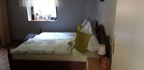 Die Ferienwohnung befindet sich in einem Einfamilienhaus direkt am Wald. Über einen eigenen Eingang betreten Sie die Erdgeschoss-Wohnung durch einen kleinen Flur. Im Wohnzimmer steht eine Couch gegenüber dem Fernseher sowie ein Esstisch nahe der offenen Küche. Vom Wohn- und Esszimmer kommen Sie direkt auf die große Terrasse mit dem schönen Naturblick. Im Schlafzimmer befindet sich neben dem Doppelbett ein 3-türiger Kleiderschrank mit Spiegel. Der dritte Gast kann auf dem klappbaren Gästebett (0,80m x 1,90m) schlafen, ein Kleinkind bis 2 Jahre im Kinderreisebett/Babybett kann kostenlos übernachten. Die Nichtraucherwohnung wird durch ein Duschbad mit WC komplettiert. WLan ist vorhanden, leider empfangen Sie nur das D1-Mobil-Netz. Alle Fenster der Ferienwohnung sind mit Außenrollläden ausgestattet. Ihre Räder haben Platz in einem Fahrrad-Abstellraum. Ihr Pkw parkt auf dem Grundstück am Haus.