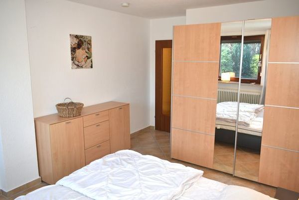 Schlafzimmer 1: Kleiderschrank, 2 Matratzen, 2 Nachttische, Doppelbett 2,00 x 1,80 m, 2 Nachttischlampen, Anrichte, Stummerdiener, Fön, Spiegel, Tischlampe