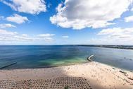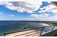 3-Zimmer-Eck-Appartement, 24. OG, ca. 90 m² mit Meerblick. Umlaufende Loggia von ca. 26 m², offene Einbauküche, Mikrowelle, Geschirrspüler, Waschmaschine/Trockner, Duschbad/WC, Fön, 2x TV, Stereoanlage mit Digitalradio, kostenl. W-Lan, Aufzug, inkl. Tiefgaragenstellplatz (Einfahrtshöhe: 1,85 m). Highlight dieser komfortablen 3-Zimmer Ferienwohnung ist die traumhafte Lage mit Blick über den Strand und Ostsee, sowie auf ein- und ausfahrendem Schiffsverkehr. Der großzügige Wohnraum besteht aus einer hellen Wohnlandschaft und einer bequemen Essecke und einer offenen Einbauküche. Im ersten Schlafzimmer steht ein Doppelbett (2x 90 cm x 200 cm) und ein großer Einbauschrank. Im weiteren Schlafzimmer steht ebenfalls ein Doppelbett (2x 90 cm x 200 cm) auch mit Kleiderschrank. Das moderne Duschbad erreichen Sie vom Flur. Den überdimensionalen Eckbalkon zum Strand und Ostsee erreichen Sie von allen Wohnräumen, um den tollen Panoramablick zu genießen. Wellnessangebote wie Schwimmbad, Sauna, Beauty sowie Restaurants und Cafés sind im Haus. Lage: Direkt am Strand.