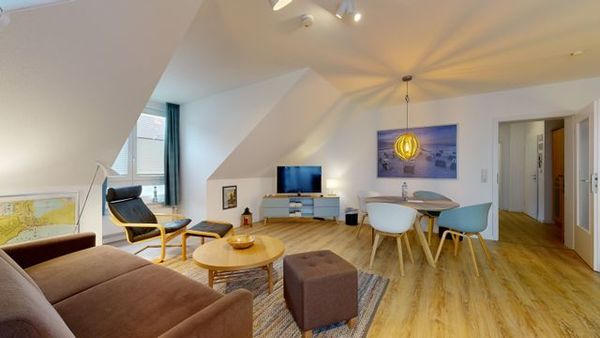 Ferienwohnung Binzer Sterne 39 für bis zu 6 Personen im im 2. OG, Typ C (3 Zimmer / 68 m²) des Appartementhauses Binzer Sterne, 2 Schlafzimmer, Parkplatz (gegen Gebühr) und freies WLAN.