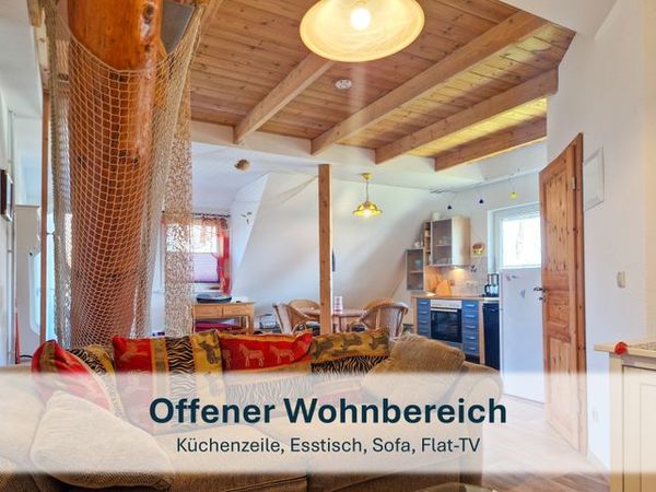 Willkommen in unserer wunderschönen Obergeschosswohnung im charmanten Reetdachhaus  Ihrem perfekten Rückzugsort für einen unvergesslichen Ostseeurlaub! In ruhiger Lage bietet diese gemütliche Ferienwohnung Platz für bis zu 4 Personen und ist der ideale Ort für einen entspannten Familienurlaub.