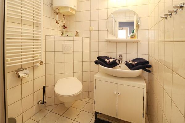 Das Bad befindet sich separat und beinhaltet Dusche und WC.