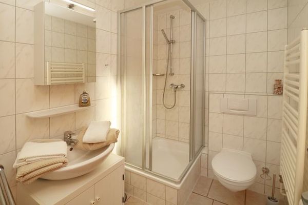 Das Bad befindet sich separat und beinhaltet Dusche und WC.