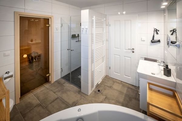 Bettwäsche, Handtücher, Reise-/Kinderbett, Terrasse, Tiere willkommen, Nichtraucher, Waschmaschine, Dusche, Spülmaschine, Trockner, Haartrockner, Mikrowelle, Kühlschrank, Backofen, WLAN, Hochstuhl, Sauna (Kat.), Küche (offen), Whirlpool, Doppelbett, französisches Bett, Schlafsofa, Bad/WC, Spielekonsole, Smart-TV, Kaffeemaschine, Toaster, Wasserkocher, Bügelbrett