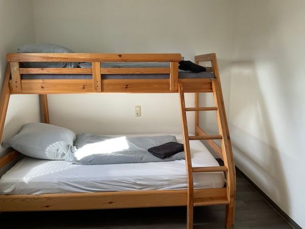 Die Ferienwohnung befindet sich im Erdgeschoss, im Haus des Vermieters. Die modern eingerichtete Ferienwohnung besteht aus einem Wohnbereich mit der Sitzgruppe, der Küchenzeile und dem Esstisch, dem Schlafraum mit Doppelbett und einem weiteren Schlafzimmer mit einem Etagenbett, sowie dem Duschbad.