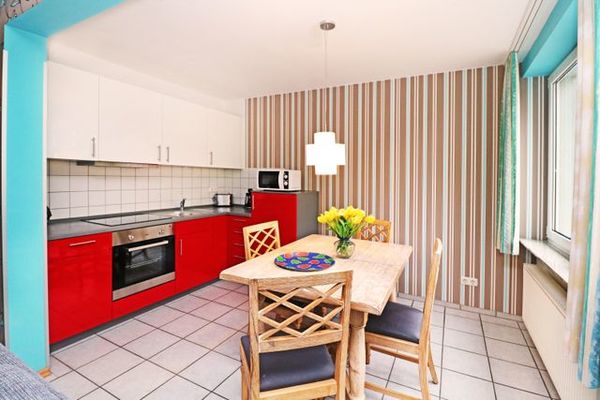 Die FeWo Q06 ist komplett möbliert und verfügt über eine voll ausgestattete Küche mit Geschirr, Töpfen und Besteck. Verbrauchsartikel des täglichen Bedarfs sind nicht enthalten. Ein Wäschepaket gegen Gebühr.