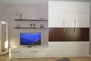 Ein Schrankbett im Wohnbereich mit 2 Einzelbetten, Einbauschränke im Flur.