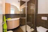 - 1 Badezimmer mit ebenerdiger Dusche, WC, Waschbecken