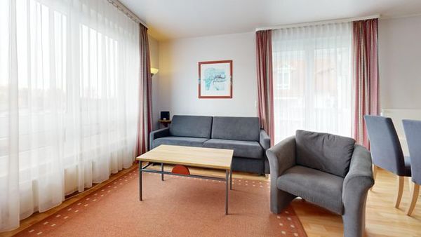 Ferienwohnung Binzer Sterne 10 für bis zu 4 Personen im 1. Obergeschoss (2 Zimmer / 45 m²) des Appartementhauses Binzer Sterne, 1 Schlafzimmer, Parkplatz (gegen Gebühr) und freies WLAN.