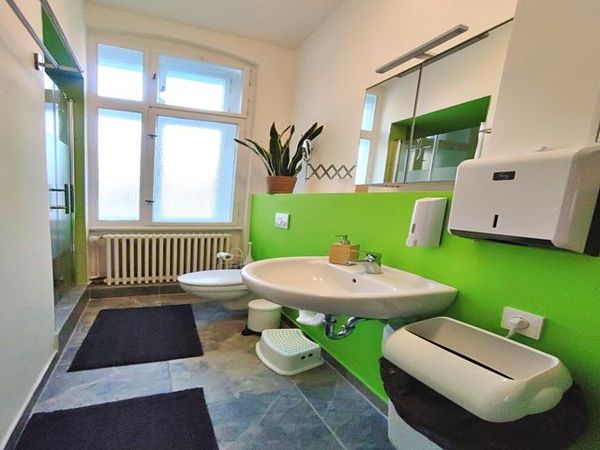 Bad mit Dusche, WC, Haartrockner, Tritthocker