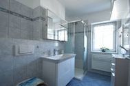 - Tageslichtbad mit Dusche, Waschplatz, Handtuchtrockner, WC und Fön