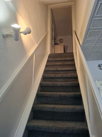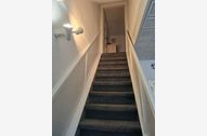 Um zu den Schlafzimmern im Obergeschoss zu gelangen, müssen Sie eine steile Treppe hinaufsteigen.