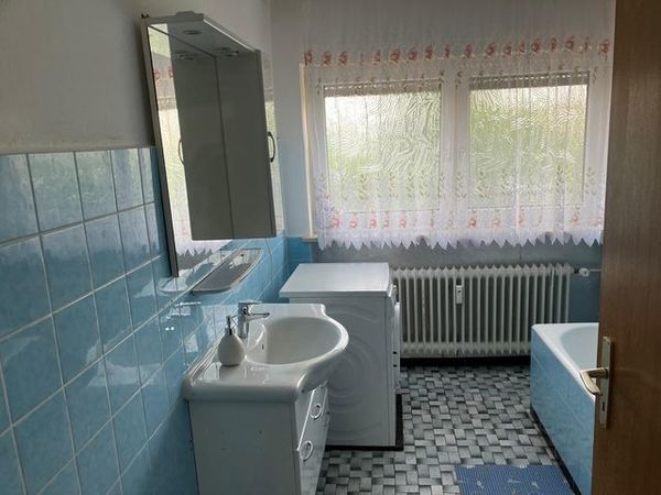 Das Badezimmer ist mit Badewanne und Dusche ausgestattet. Das WC ist separat.
