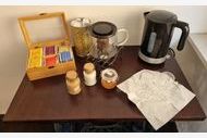 Dusche/WC, Bettwäsche, Handtücher, Reise-/Kinderbett, Nichtraucher, Waschmaschine, Dusche, Trockner, Schreibtisch, Haartrockner, Mikrowelle, Kühlschrank, separate Küche, Backofen, Heizung, WLAN, Hochstuhl, Gefriermöglichkeit, TV - Flachbild, Küche (offen), Tiere nicht erlaubt, französisches Bett, Kaffeemaschine, Rauchmelder, Seife, Toilettenpapier, Toaster, Wasserkocher, Pad-/Kapsel-Kaffeemaschine, Holz- oder Parkettböden, Bügelbrett, Bügeleisen, Verdunkelungsmöglichkeit, Reinigungsutensilien, Feuerlöscher