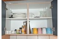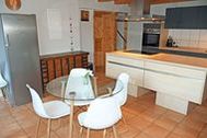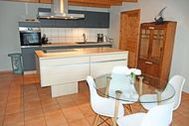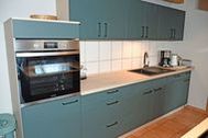 Die moderne separate Küche ist mit einem Ceranfeld-Herd, Backofen, Spülmaschine, Wasserkocher, Kaffeemaschine, Toaster und Kühlschrank mit Gefrierfach komplett ausgestattet. Hier steht auch ein Esstisch mit Sitzgelegenheiten.