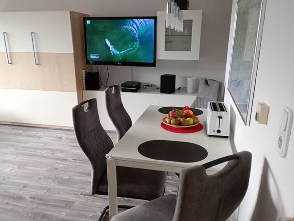 Gemütliche kleine Wohnung mit seperatem Schlafzimmer. Fussböden im Flur und Wohnzimmer neu. In der Küche alles was man braucht. Kühlschrank mit Gefrierfach, Ceranfeld, Backofen, Kaffeemaschine ,Wasserkocher,Eierkocher,Toaster,Heißluftfritteuse