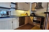 Die 3-Zimmer-Ferienwohnung befindet sich im ersten Obergeschoss und liegt im hinteren Teil des Hauses. Der Wohnbereich ist groß und integriert einen Essbereich sowie eine vollständig ausgestattete Küche mit Geschirrspüler, einem Kühlschrank mit 3-Sterne-Fach, einer Mikrowelle, einem Herd, einem Backofen, einem Wasserkocher, einer Kaffeemaschine und einem Toaster. Durch die bodentiefen Fenster im Essbereich können Sie diese komplett öffnen und sich wie in einer geschützten Loggia draußen aufhalten.
