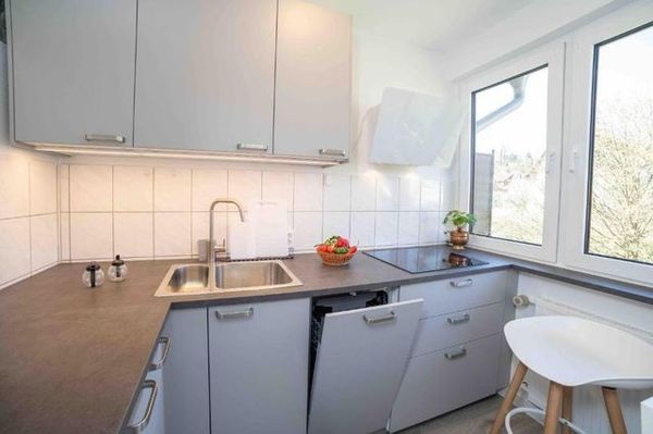 Das Apartment ist komplett renoviert und verfügt über eine neue Einbauküche mit Spülmaschine, Mikrowelle und Dunstabzugshaube, was das Kochen sehr angenehm macht. Die Wohnung ist eine Nichtraucherwohnung und hat einen schönen Design-Vinyl-Belag in heller Eichenoptik, der für eine freundliche Atmosphäre sorgt. Der großzügige Balkon mit Blick ins Grüne ist Entspannung pur,, während die große, helle Fensterfront mit elektrischen Rollos viel Licht ins Apartment lässt. Das renovierte Bad mit Dusche und WC ist modern gestaltet, und die neuen Böden im gesamten Apartment sorgen für ein einheitliches, hochwertiges Ambiente. Der großzügige Flur mit raumhohem Spiegel schafft zusätzlichen Raum, und das bequeme hochwertige Schlafsofa (160x200) bietet eine angenehme Schlafmöglichkeit.
