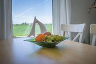 Die 62 qm große Ferienwohnung "Grote Knutt" empfängt Sie mit einem hellen, offenen Wohn- und Essbereich, der durch große Fenster und den Ausblick auf das Wattenmeer sofort Urlaubsstimmung verbreitet. Die bequeme Couch lässt sich bei Bedarf zu einem Schlafplatz für zwei weitere Gäste umwandeln.